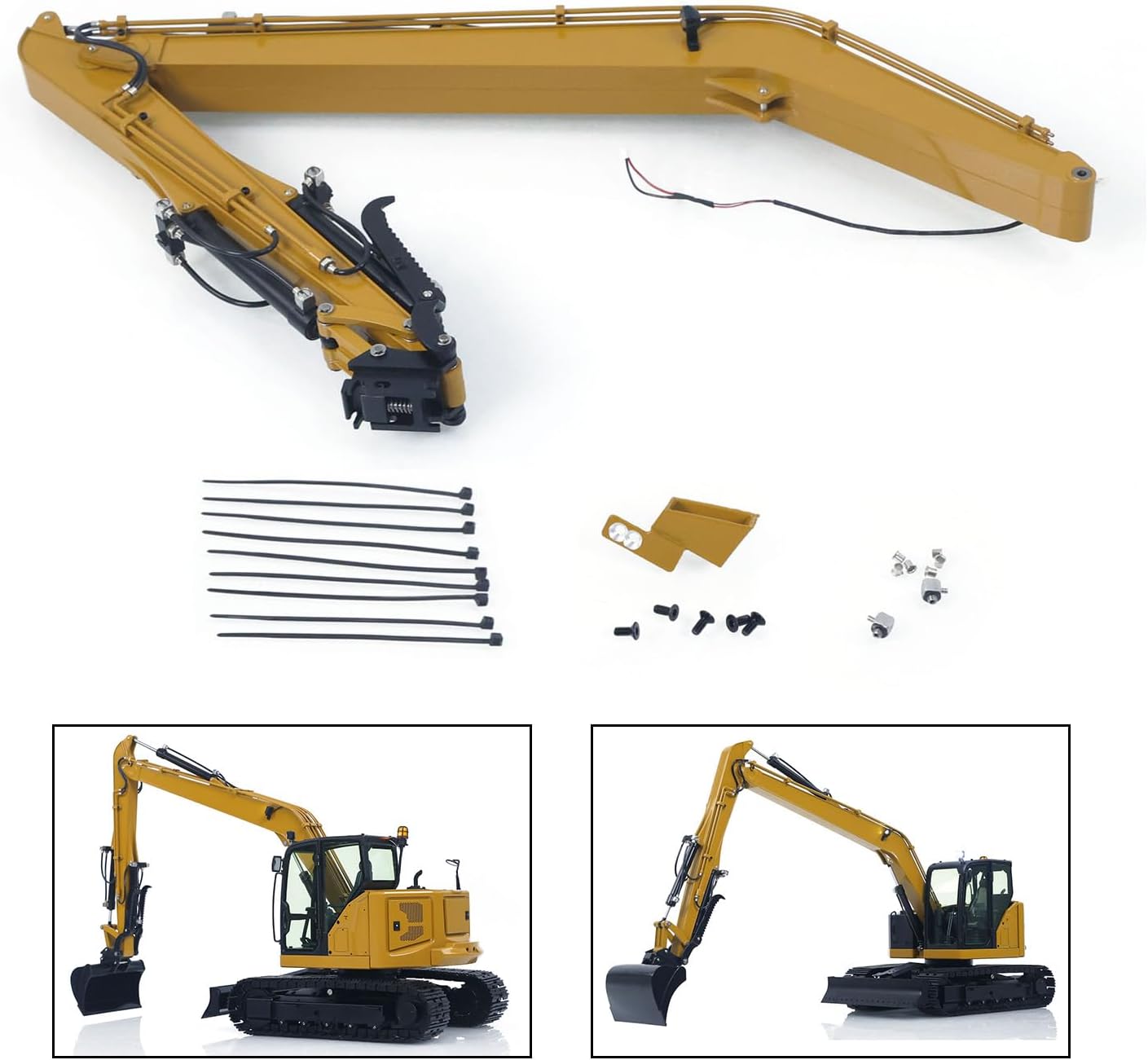 #Specification:Item Condition: New and PaintedScale: 1/14Material: Metal, PlasticSuitable for: BMG Model 1/14 C308 RC Hydraulic Excavator ModelID: BMG-C308-ETB-Y#The Package Includes:1 Set of Metal Arm and BoomOil CylinderOil PipeSpotlight